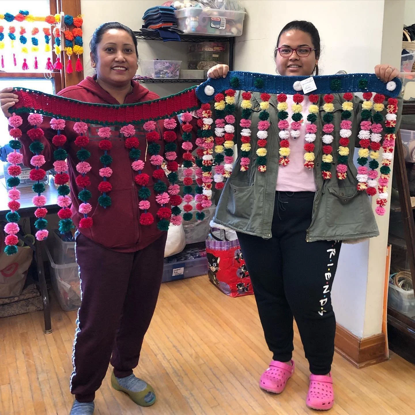 Tila Bastola (originally from Bhutan) with the sign she hand-embroidered for the Creative Journeys exhibit. Tila has been an active member of the Stitch Buffalo Refugee Women’s Workshop since our very first day!